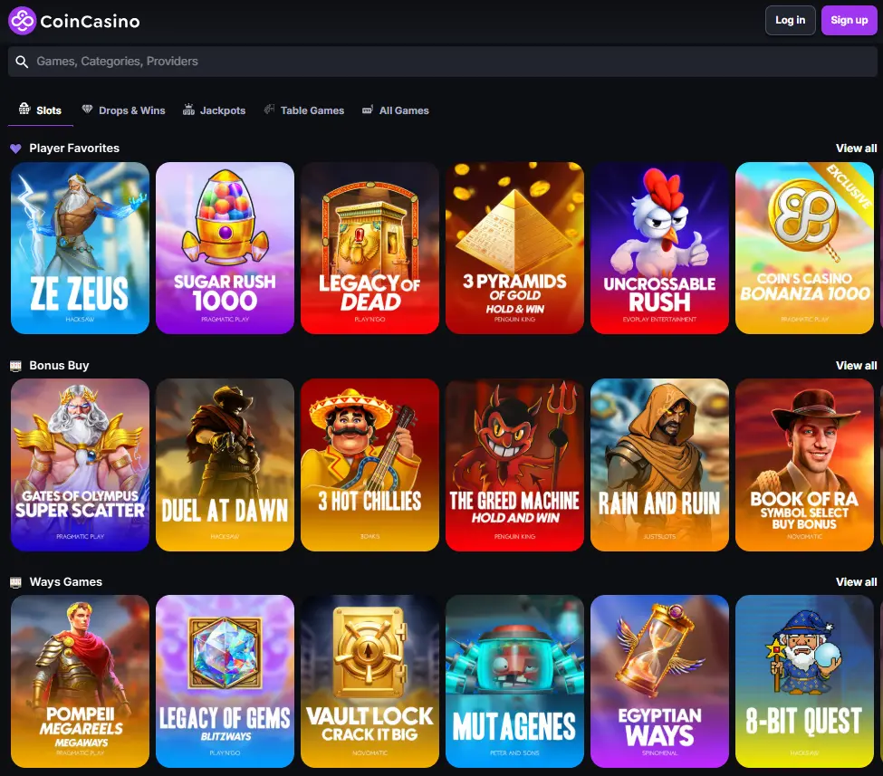 From classic slots and poker to live dealer tables and new crypto-themed games — CoinCasino offers something for every kind of player.